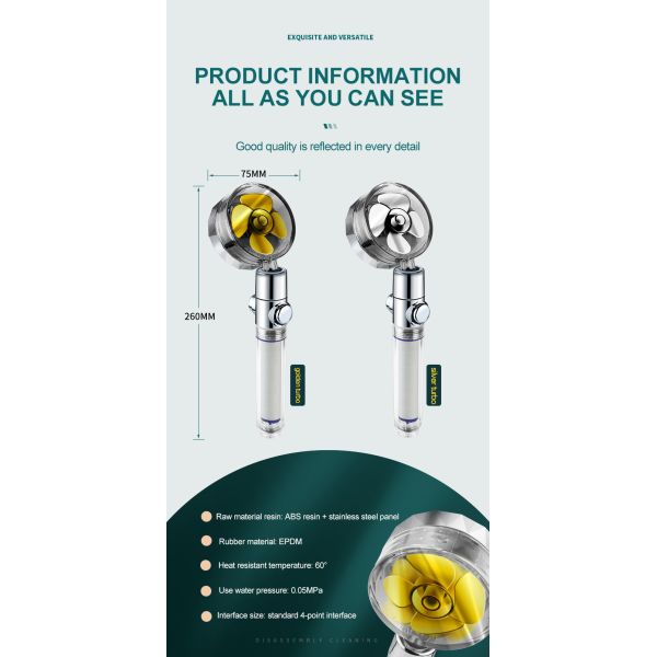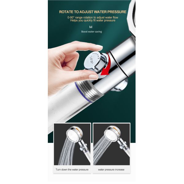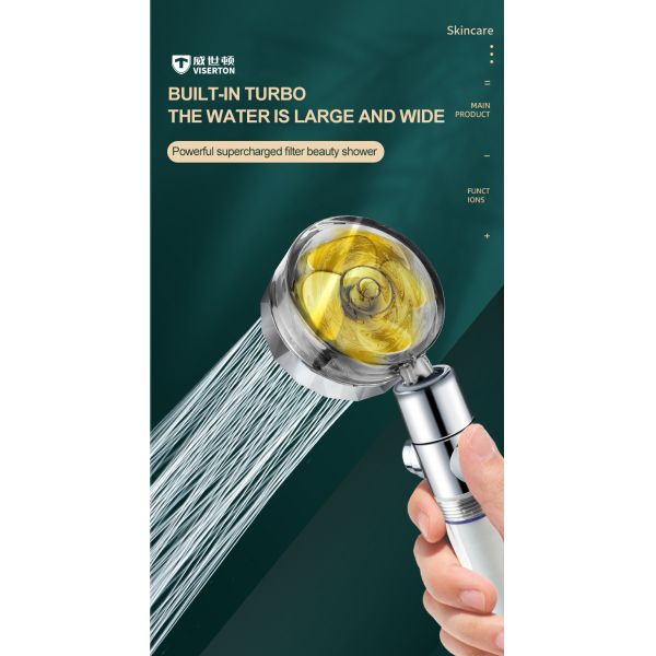 Turbo Pressurized Shower Water Filter With Rotating Detachable Shower Head